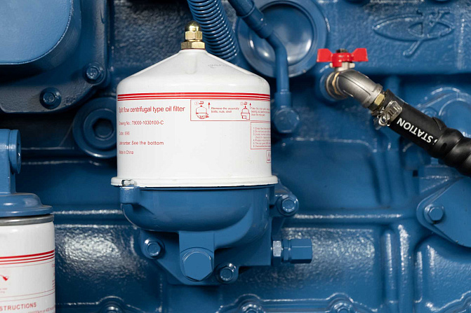 В комплектацию входит - подогреватель охлаждающей жидкости SmartGen, фильтр-сепаратор топливный, крышка для слива топлива из бака, батарея Varta +подзарядка аккумуляторной батареи SmartGen, промышленный глушитель + компенсатор. Картер двигателя имеет 2 отверстия для масляного насоса и для установки подогревателя масла. Насос для откачки масла из картера двигателя. Медный радиатор FAST рабочая температура до 50С.