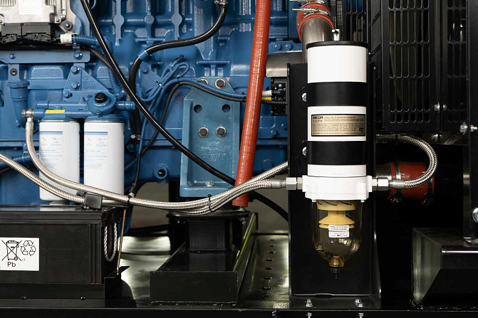 Дизельный генератор 650 кВт с двигателем Yuchai. В комплектацию входит - подогреватель охлаждающей жидкости SmartGen, фильтр-сепаратор топливный, крышка для слива топлива из бака, батарея Varta +подзарядка аккумуляторной батареи SmartGen, промышленный глушитель + компенсатор. Картер двигателя имеет 2 отверстия для масляного насоса и для установки подогревателя масла. Насос для откачки масла из картера двигателя. Медный радиатор FAST рабочая температура до 50С.